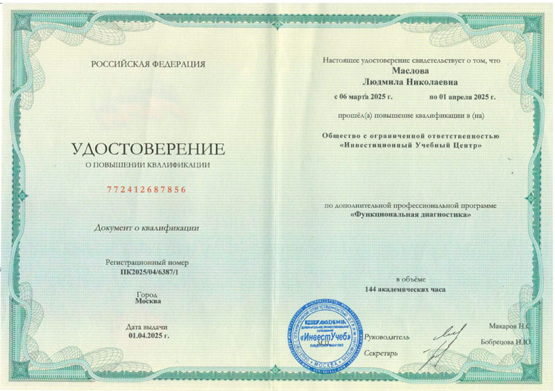 2025 г. – ООО Инвестиционный учебный центр – Функциональная диагностика